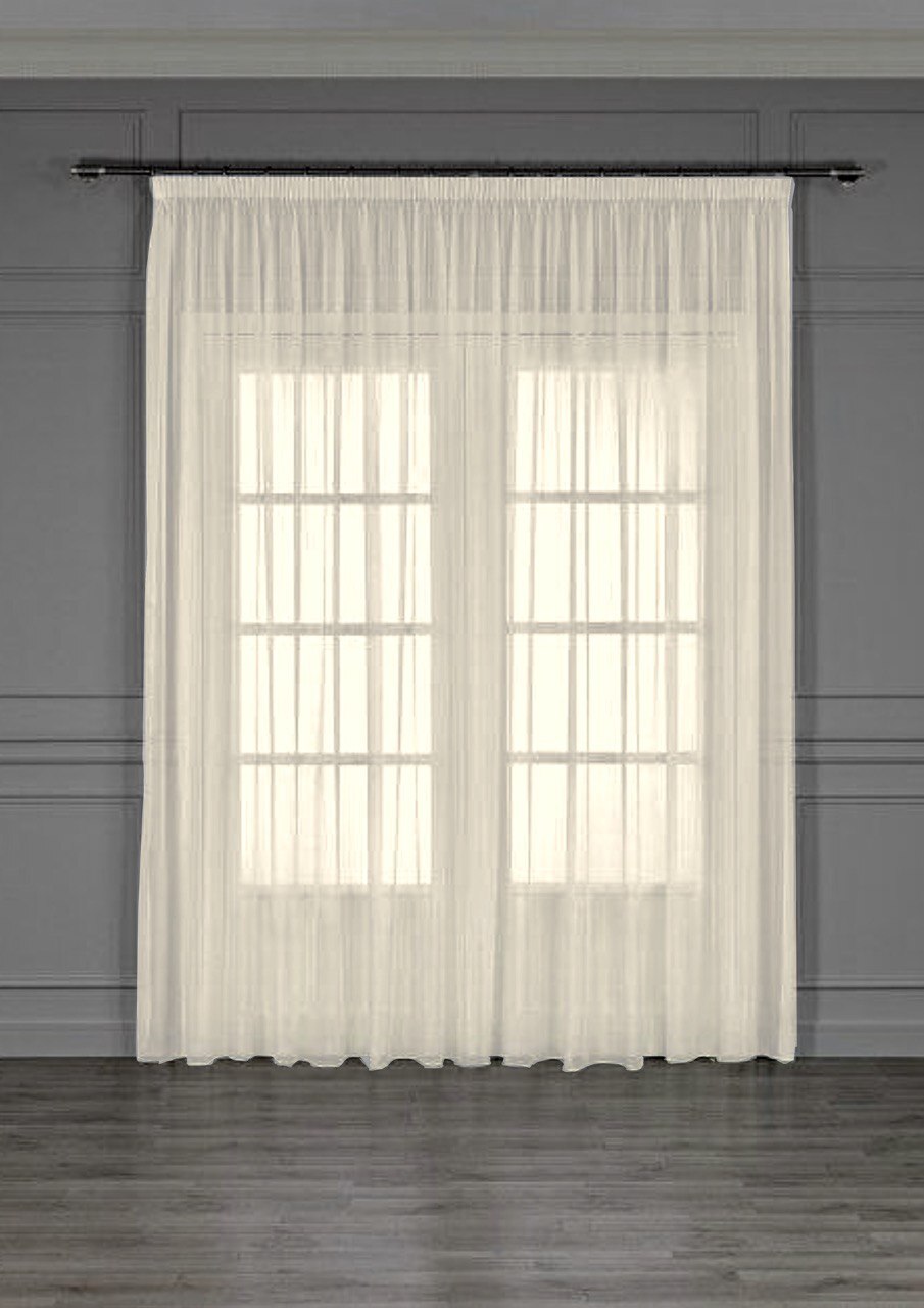 Розмір: ширина 4м.,6м. Висота на ваш розмір (пошиємо за 3-4 дні). Тканина: 90% поліестор. 10% бавовни. Виробник тканини: Іспанія Виробник пошиву: Україна. Колір: білий, молочний. Тасьма: карандаш, висота 5см.